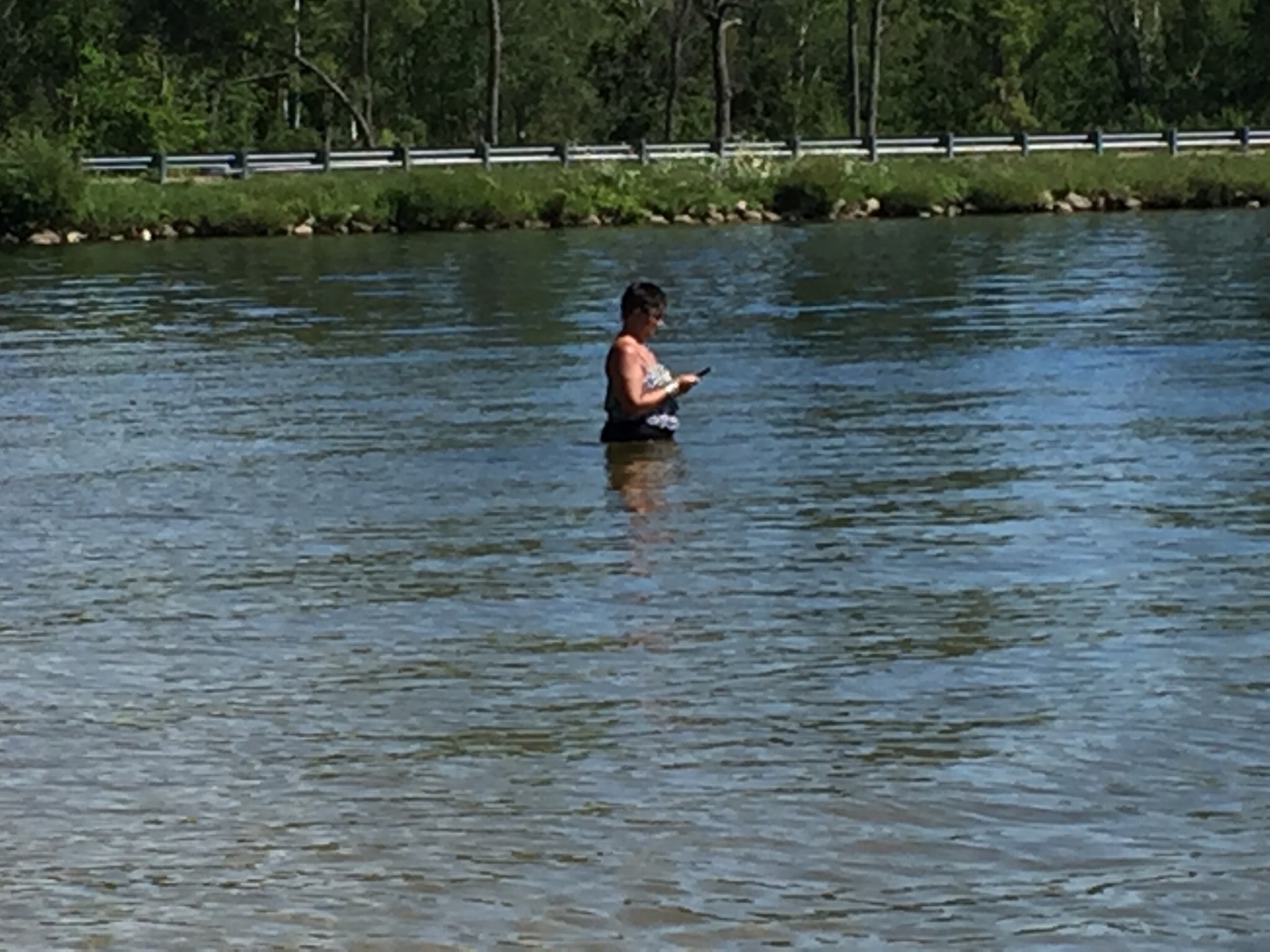 Houghton lake is huge but shallow, so the water is much more swimmable than, say, Lake Michigan, where people apparently swim in cold water for the same reason that people without access to meat eat things like grubs.