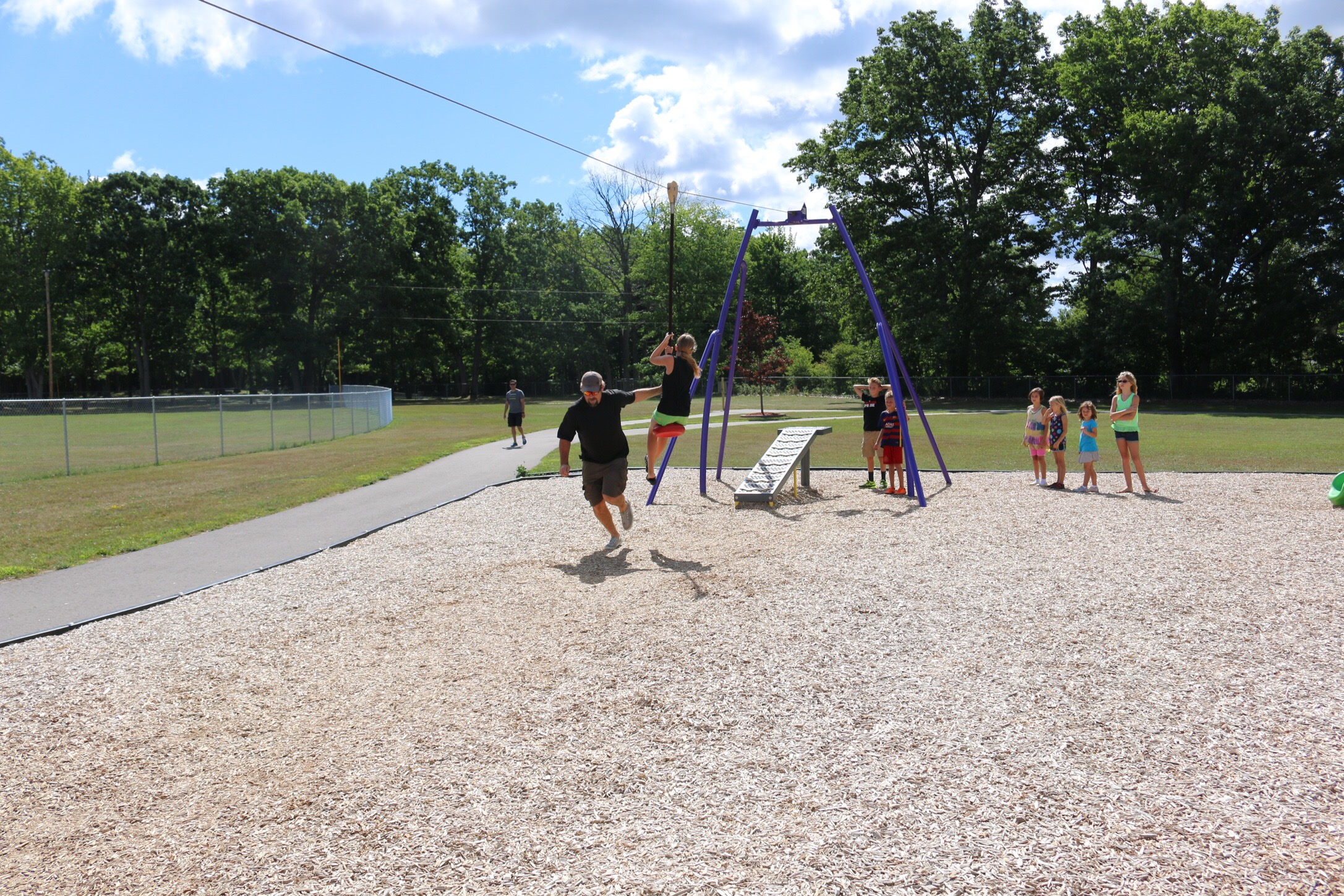 There was a zipline at a nearby playground at the lake, and on Saturday, Aaron suggested taking the kids there. Apparently, the zipline was improperly angled for the children to reach an appropriate velocity, so Aaron took matters into his own hands.