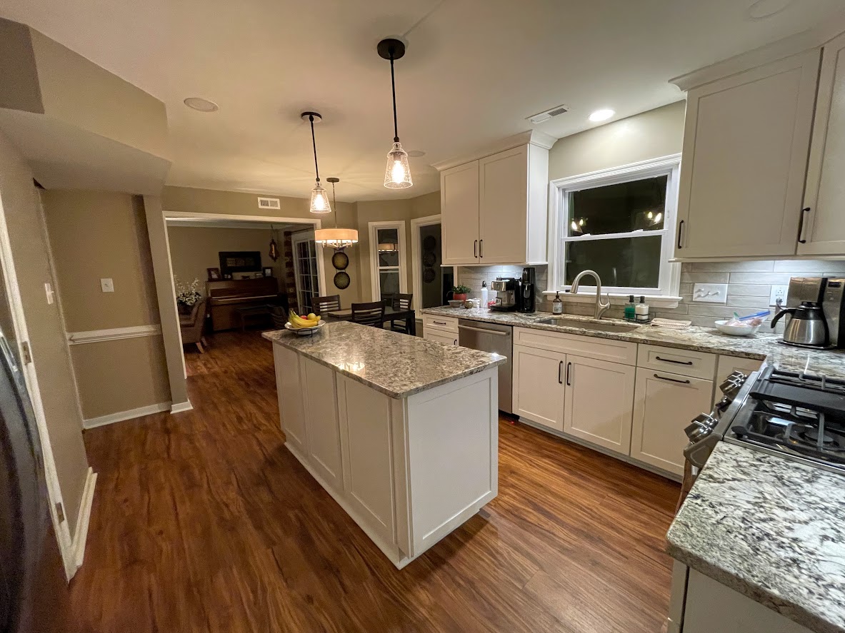 At one point, our contractor floated out the idea that we could save money on the remodel if we wanted to install the vinyl plank ourselves. We chose not to do this, and, as we watched the guys put the floor down, making numerous precise, time-consuming cuts and measurements, we felt better and better about this decision.